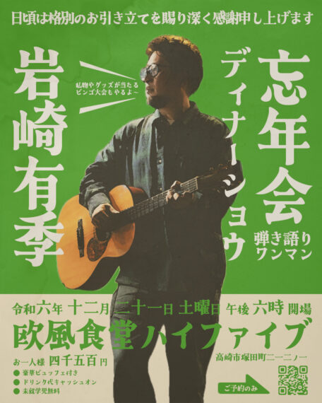 この度、忘年会を兼ねて弾き語りワンマンライブを開催致します。