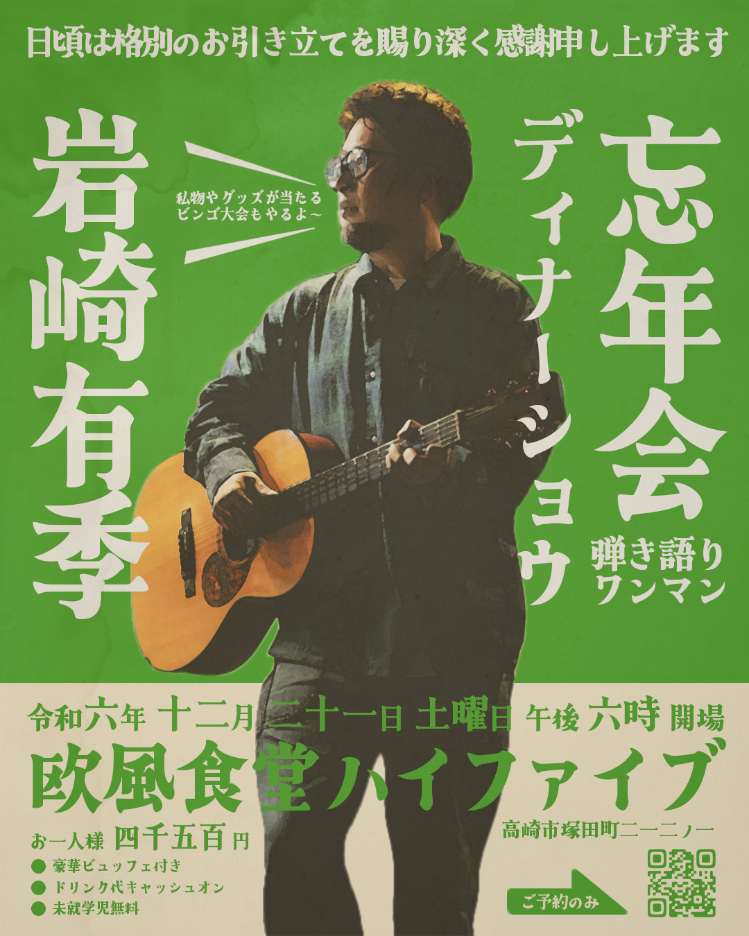 忘年会 弾き語りワンマンディナーショウ